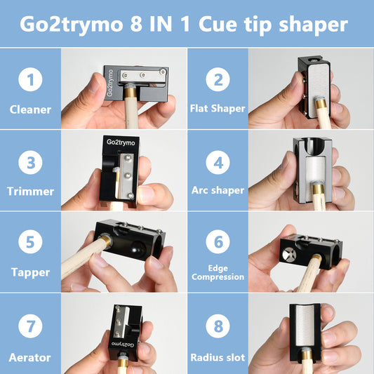 Go2trymo 8-in-1 Aluminum Pool Cue Tip Shaper Tool